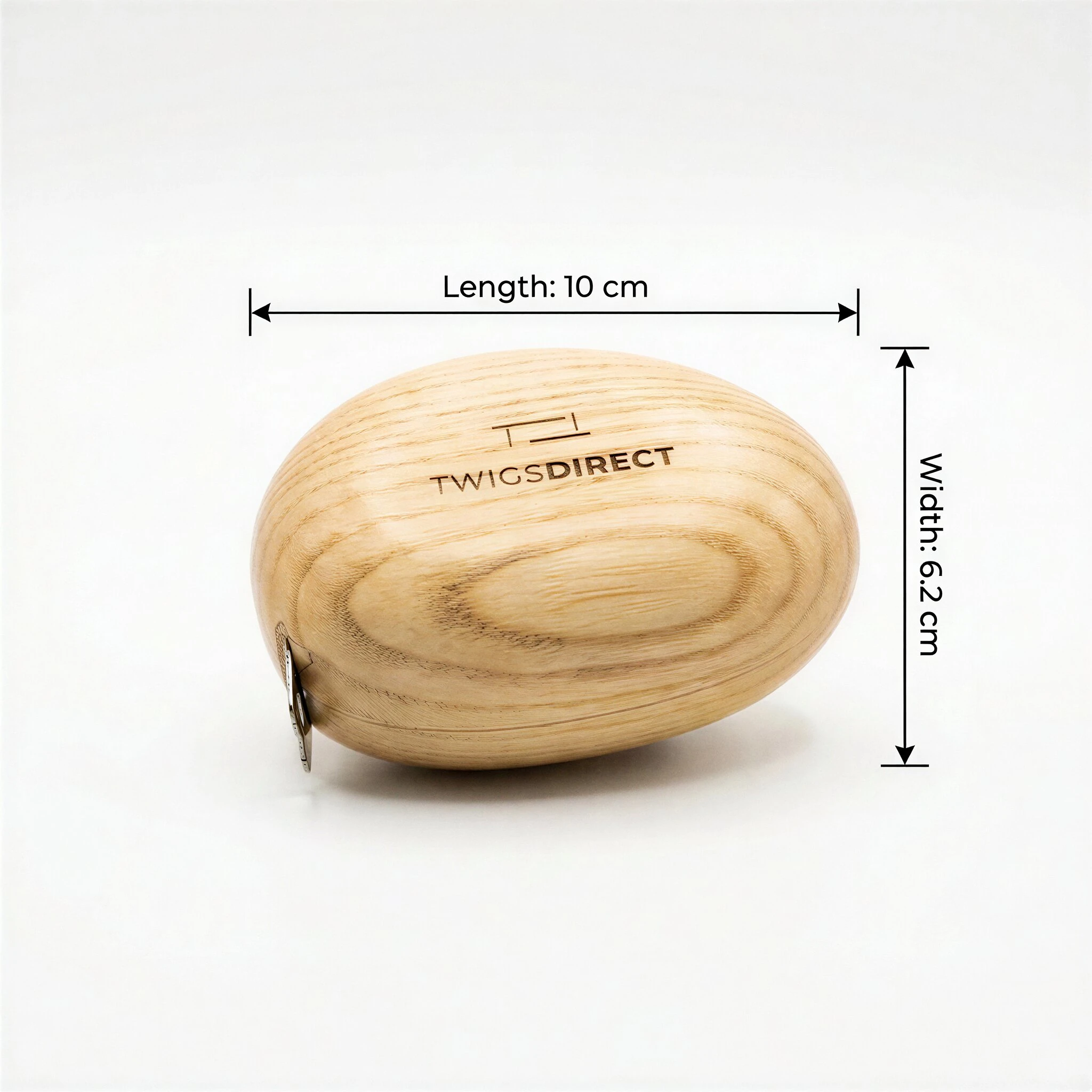 A compact measuring tape shaped in a smooth, cobble like form, designed to sit comfortably in the hand, with the option to personalise it through custom engraving.