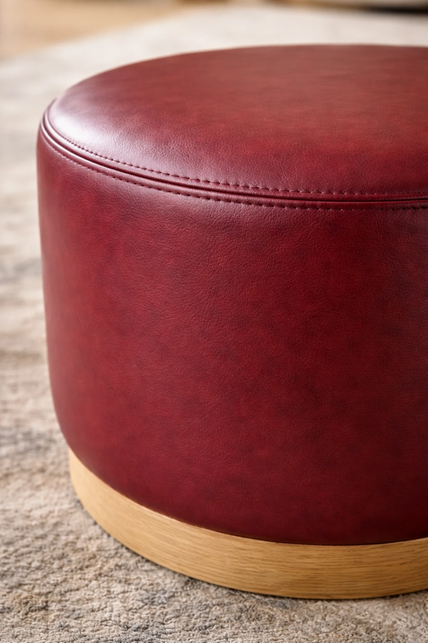 The Silo Ottoman features a softly rounded form and clean detailing, offering a calm, understated presence. Upholstered for comfort and finished with a solid wood base, it brings versatility and quiet balance to contemporary living spaces.