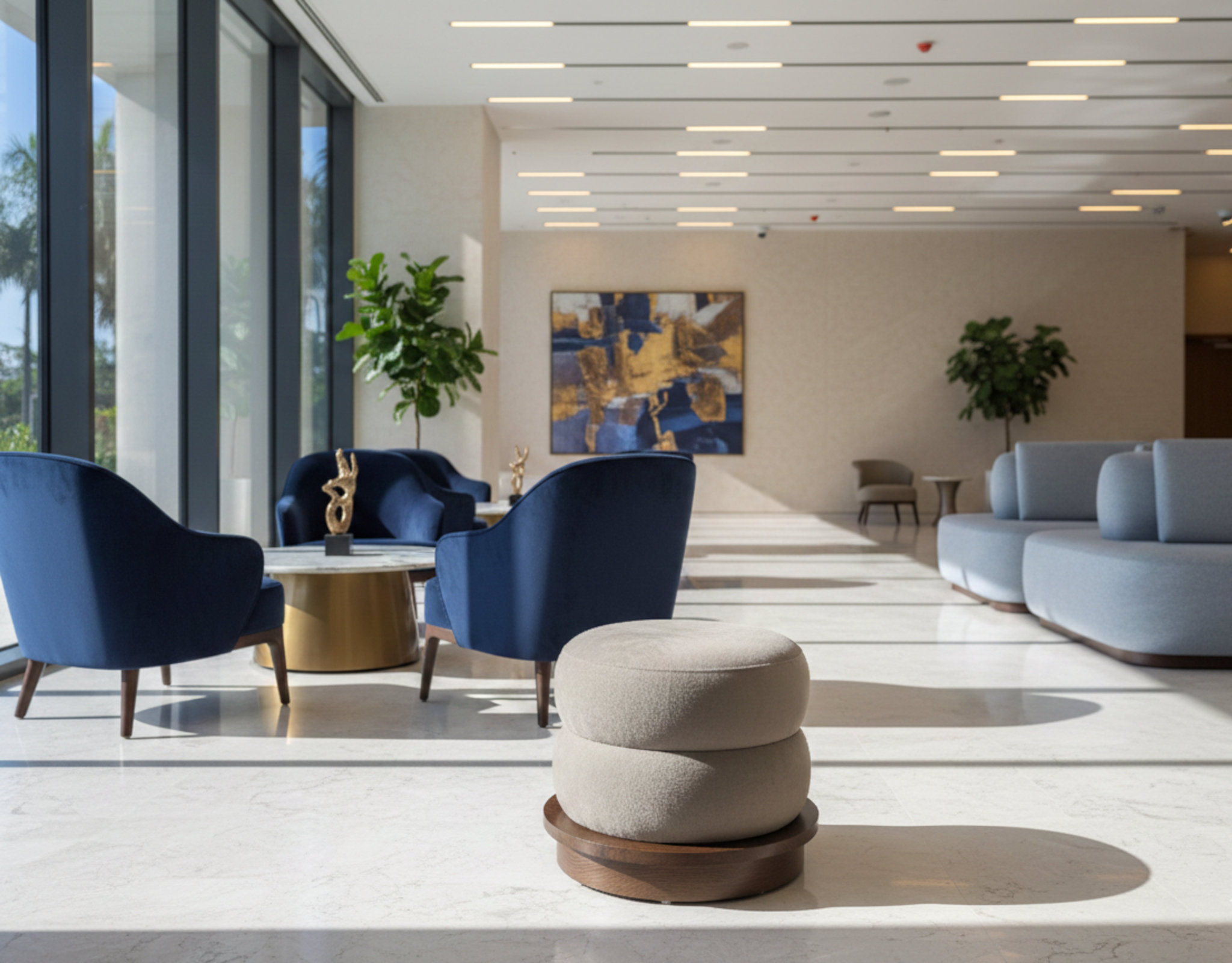 Ivo Ottoman is defined by restraint and balance. Its form is compact yet substantial, offering a sense of grounding within open spaces. Designed to integrate seamlessly into lounge and collaborative environments, it complements surrounding furniture without competing for attention.