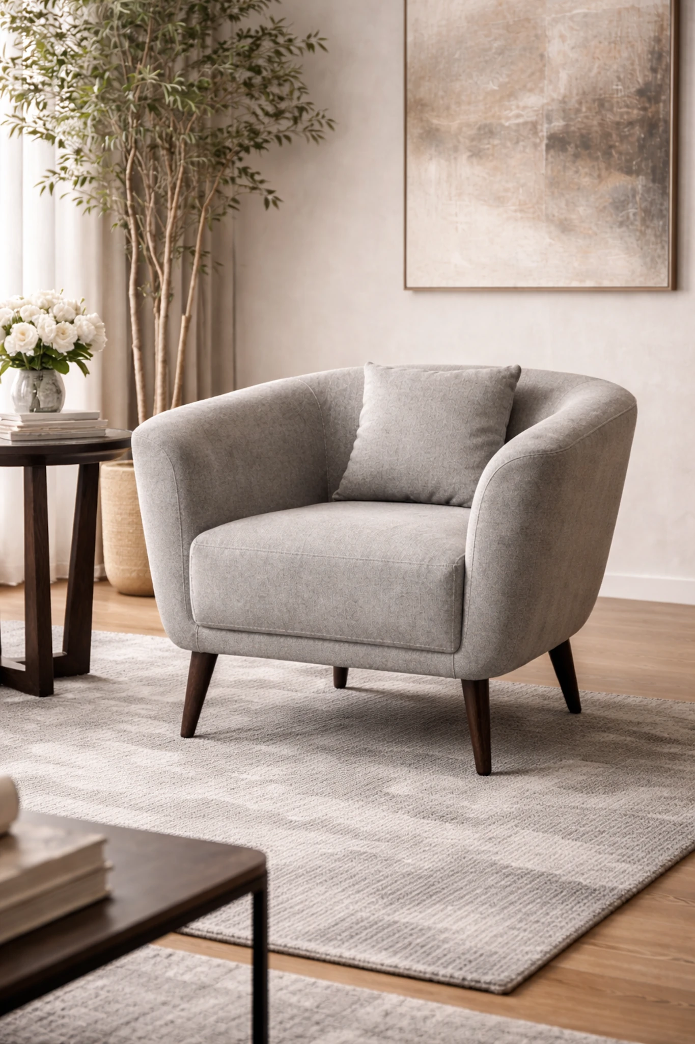 Leto Armchair offers comfortable, everyday seating with a composed and contemporary character. Its softly contoured form and balanced proportions make it well suited to living spaces, lounges, and refined project settings.