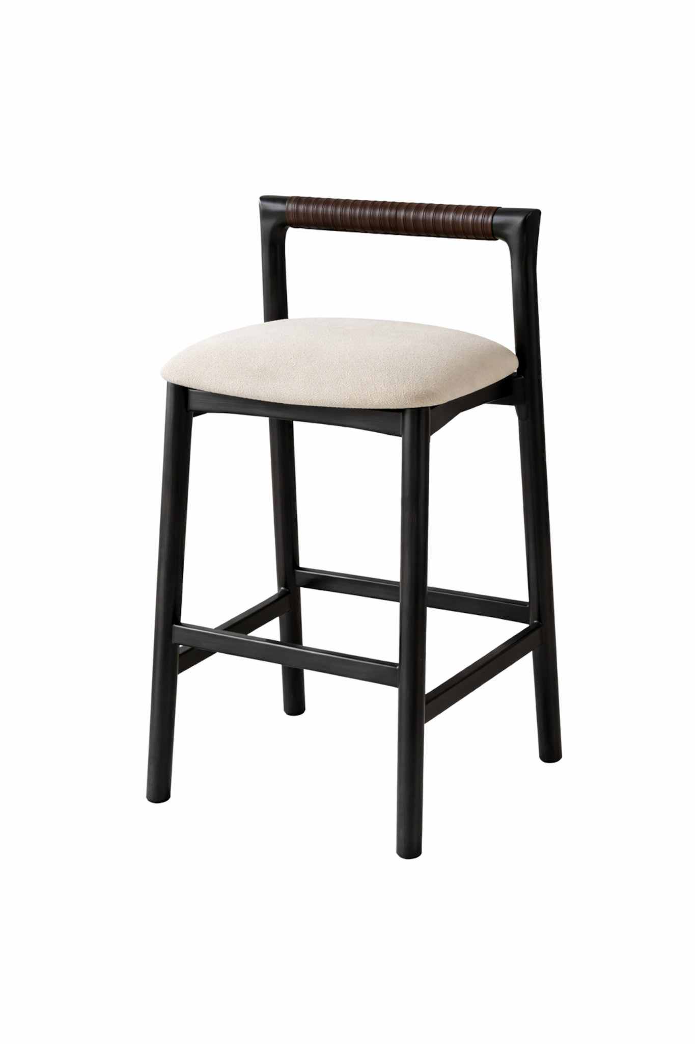 Noir Barstool is defined by contrast and restraint, where dark timber structure and wrapped leather detailing come together in a composed, understated form. The silhouette is clean and deliberate, allowing material transitions and proportion to do the visual work rather than overt styling.
