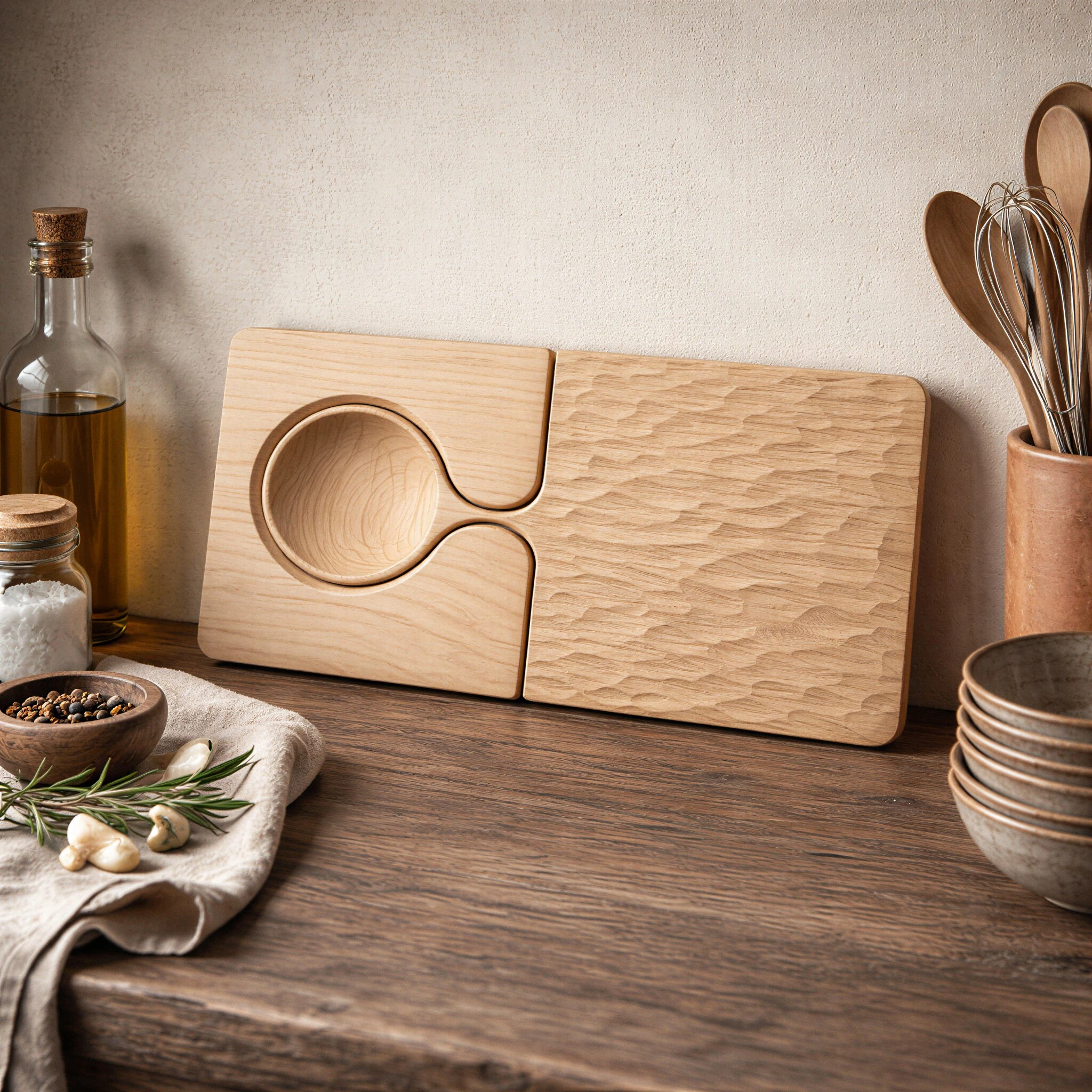 Nook Serving Tray is a quiet exploration of form, function, and material. Crafted from solid wood, it combines a smooth, carved recess with a gently contoured flat surface, allowing different elements to sit naturally together without visual clutter.