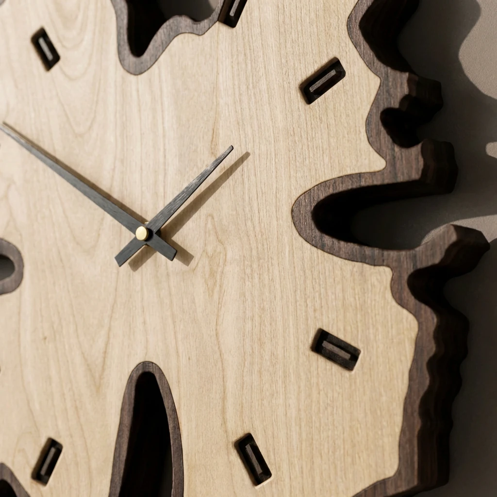 A sculptural ash wood wall clock inspired by organic natural forms. Designed to function as both a timepiece and a warm decorative accent for contemporary interiors.